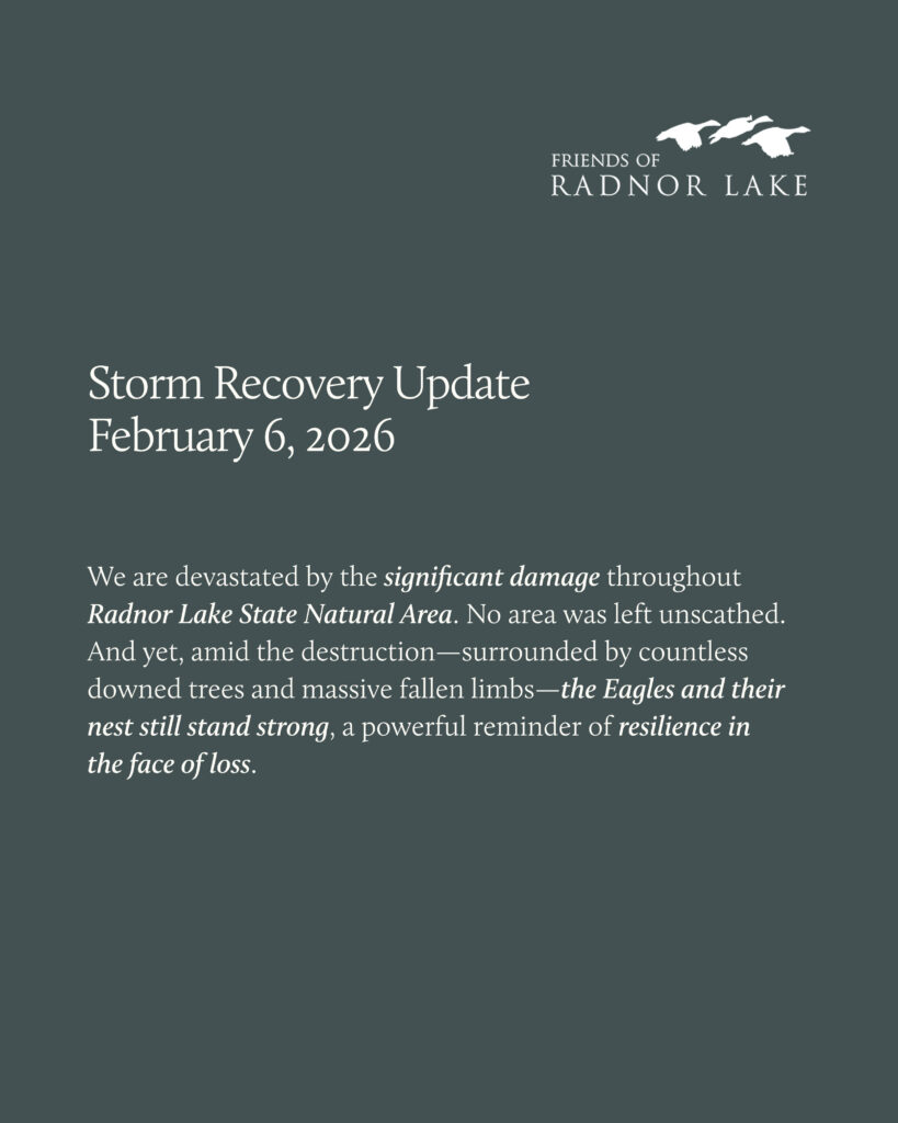 We hope to reopen the park in March. Until then, Radnor Lake will remain closed. At this time, the best way to help is to stay away and allow recovery crews to work safely and efficiently.