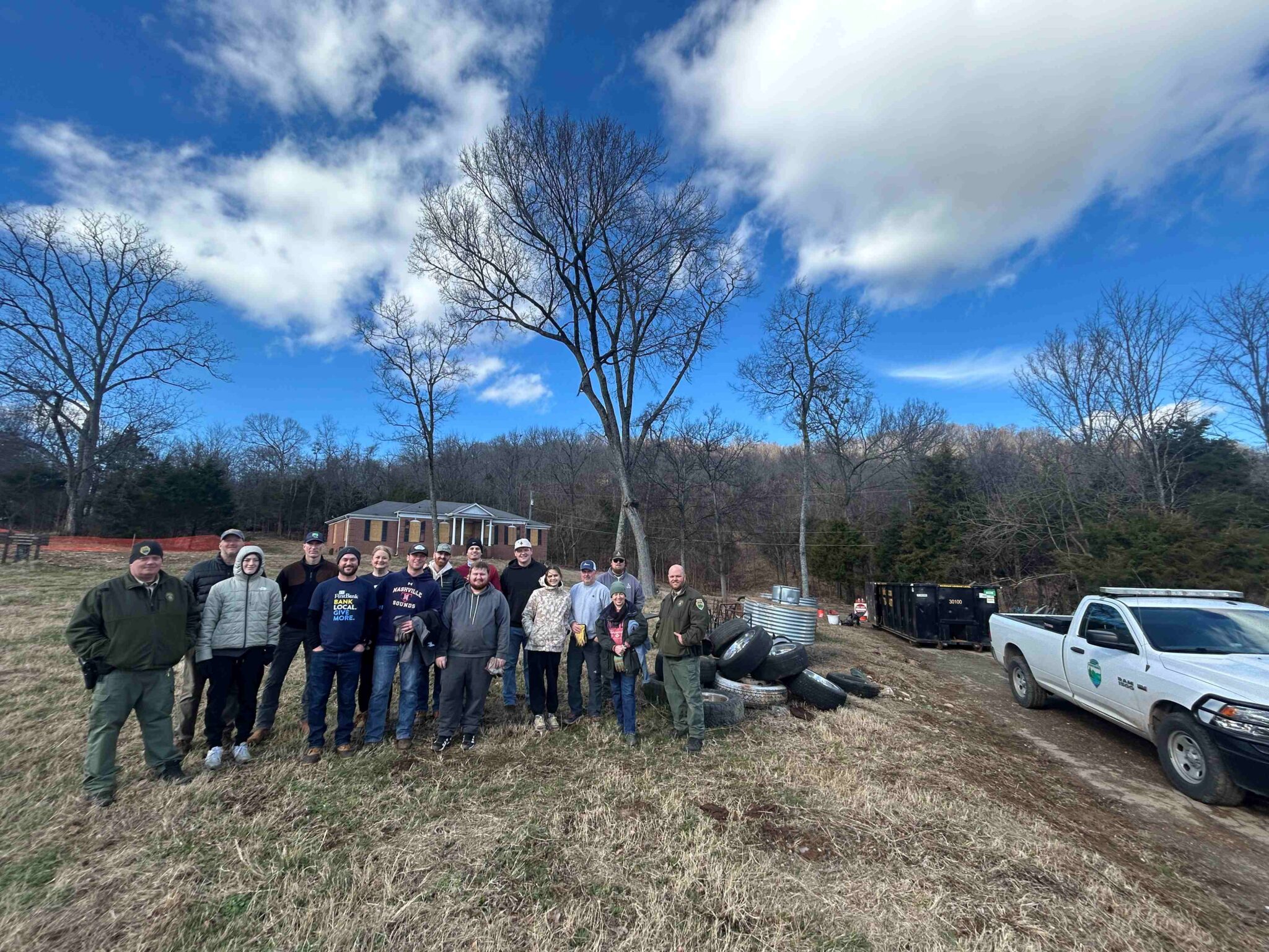 12 volunteers from FirstBank came out on Saturday, January 17th to work with our park staff in the cold as we continued our clean-up efforts for our new land acquisition project-Mantra Tract. Volunteers picked up trash, sorted recycling and helped us fill our 6th construction dumpster of trash from this 9-acre tract.