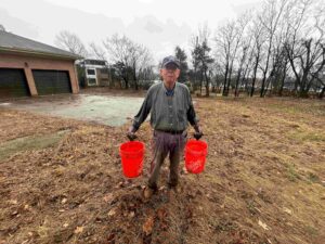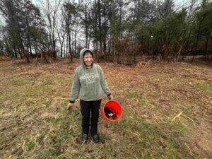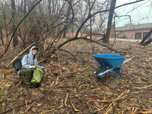 28 volunteers braved the rain to help us clean up 9-acres of our newest property known as the Mantra Tract which is located at intersection of Franklin Road/Old Hickory Blvd.  From Noon-3pm today, Saturday, January 10th,  volunteers picked up trash, sorted recycling materials and helped us stake off two chestnut trees prior to the demolition of two residences on site and helped us in overall efforts to clean up all 9 acres as part of our Harris Ridge Trail Project at Radnor Lake.
